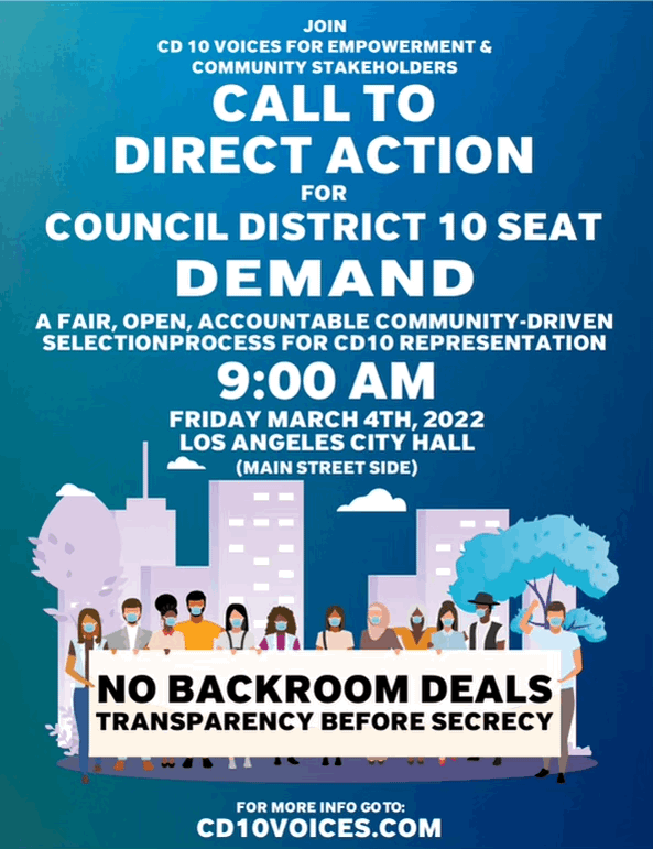 Limited free transportation is available to City Hall. The Shuttle departs at 8:30 A.M. from the Southern Missionary Baptist Church (4678 W Adams Blvd, LA 90016) parking lot. To secure a seat, please RSVP by calling or texting 1-323-290-3544. The bus will return to the church at 10:30 A.M.
